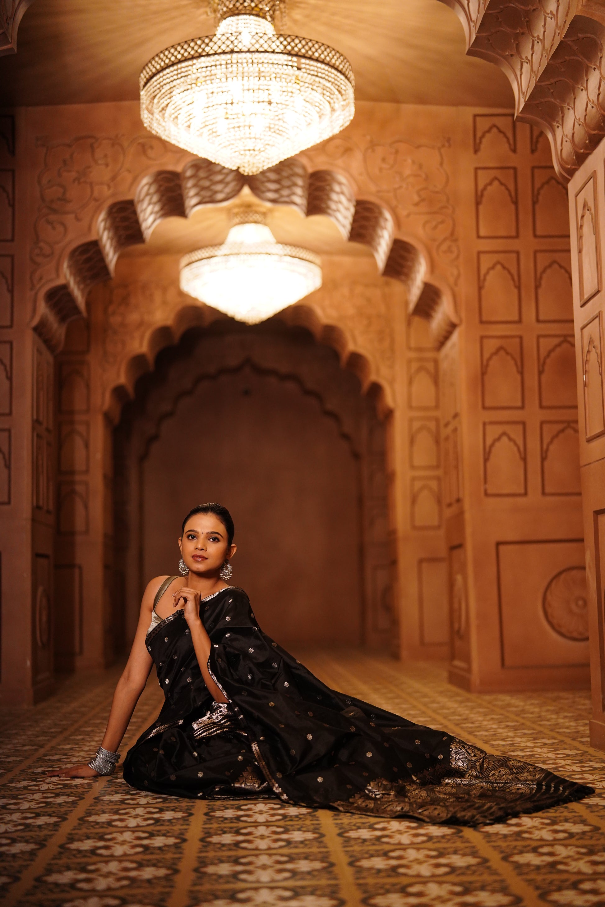Command attention with the enduring elegance of "Midnight Silver," a captivating handwoven silk Mekhela Sador designed for sophisticated allure. This exquisite ensemble features a deep, lustrous black, providing a dramatic canvas for the shimmering silver accents. The body of the sador is often subtly adorned with delicate silver motifs or a pristine plain weave that highlights its inherent sheen. The true artistry unfolds in the borders and pallu, where intricate silver zari work creates striking patterns, reflecting traditional craftsmanship with a modern edge. Perfect for evening galas, formal events, and any occasion where you desire a powerful yet refined presence, this Mekhela Sador is a timeless classic that promises to drape you in unparalleled luxury and grace.